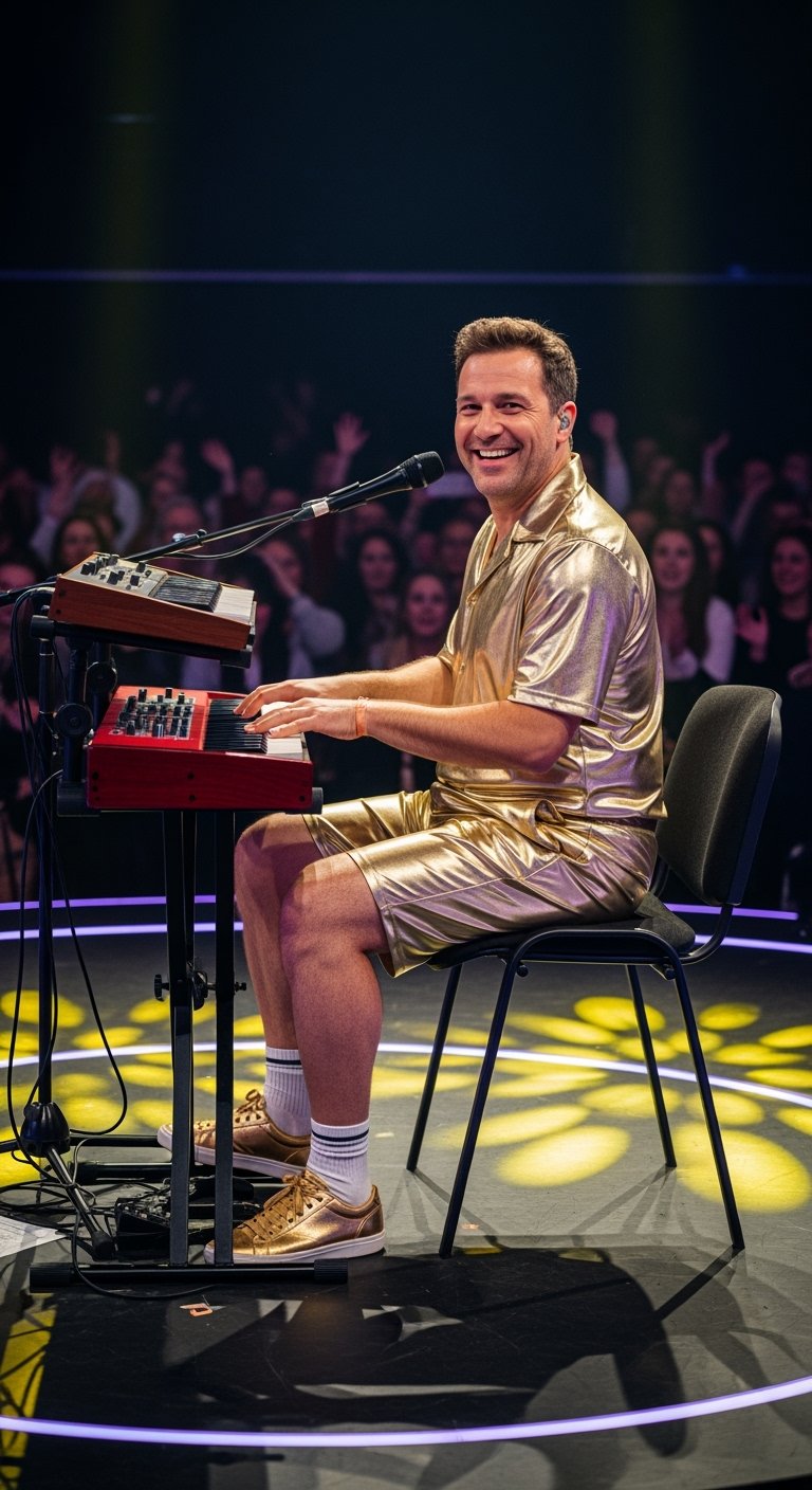 His golden outfit wasn’t just a costume — it was a statement, radiating unapologetic fun and a dash of chaos. With every exaggerated hip sway and dramatic note, the crowd leaned in further. The judges couldn’t help but laugh along.